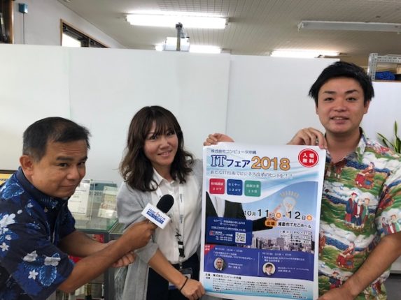 02 10月 【ラジオカーWEB版】「ITフェア2018」10/2(火)ミュージックシャワーplus+ コンピュータ沖縄さんが主催する「ITフェア2018」が10/11(木)12(金)に浦添市てだこホールにて開催されます。 今年のテーマは「新たなIT技術でビジネス改革のヒントを」。県内外より多くの最新技術を持ったメーカーの […]